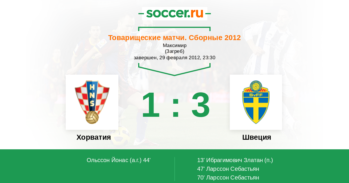 Протокол матча Хорватия против Швеция