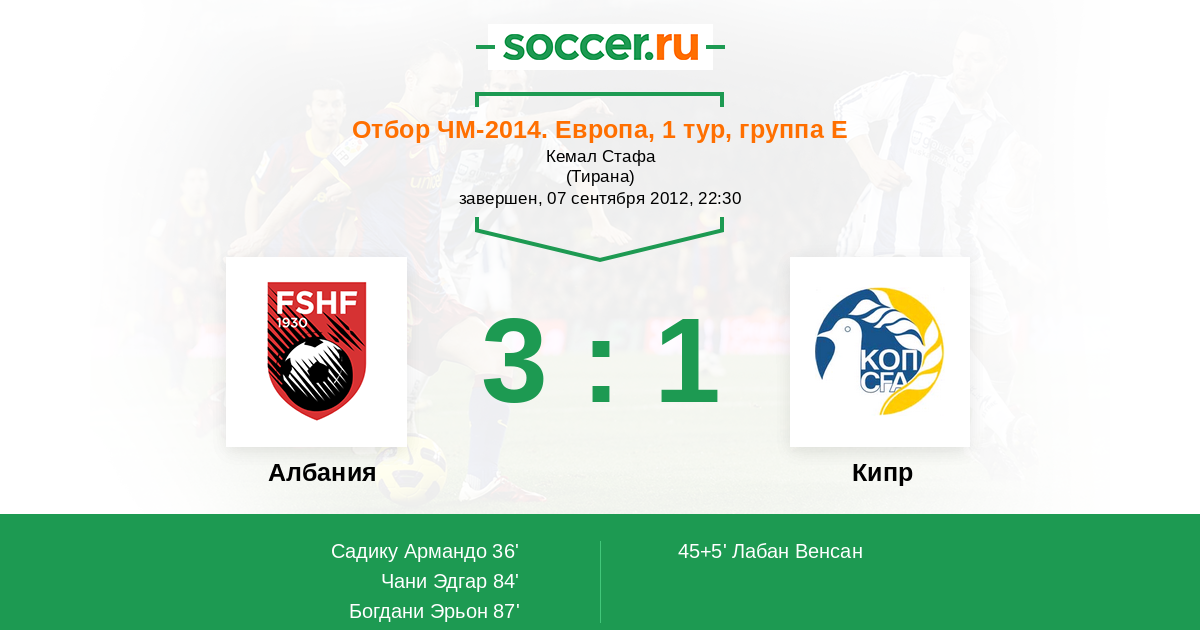 Протокол матча Албания против Кипр
