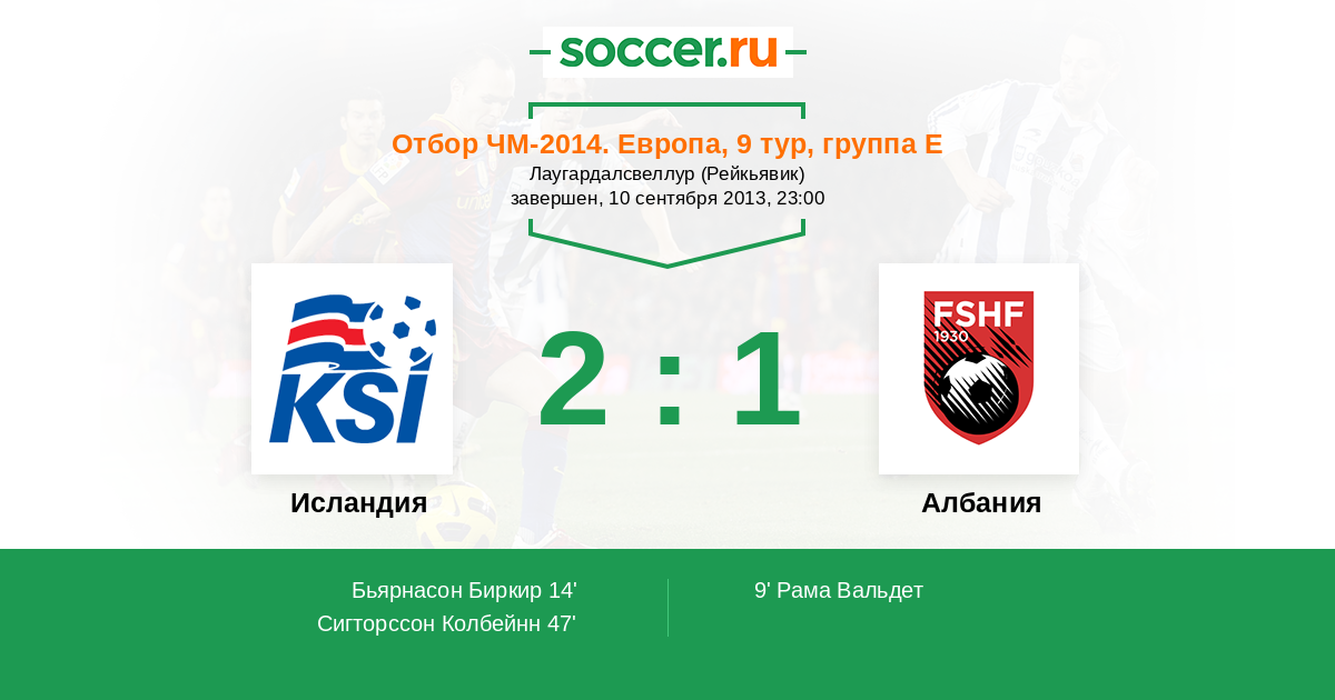 Протокол матча Исландия против Албания