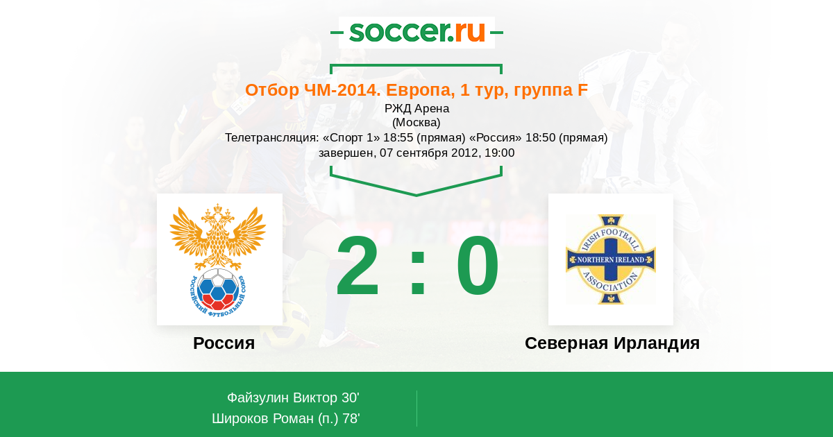Протокол матча Россия против Северная Ирландия