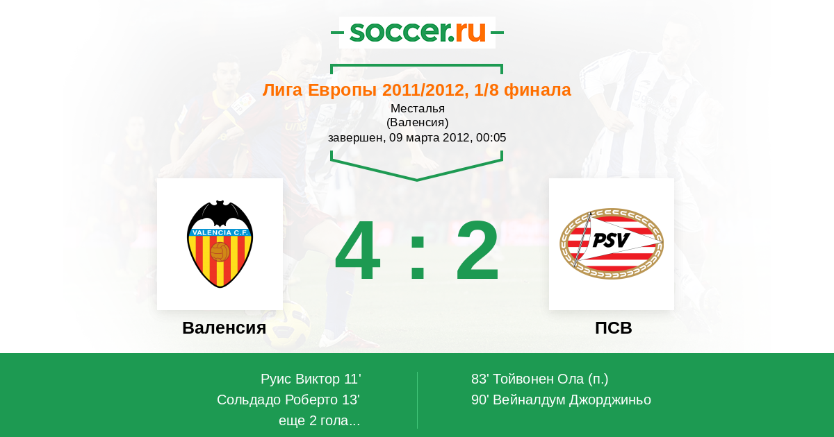 Протокол матча Валенсия против ПСВ