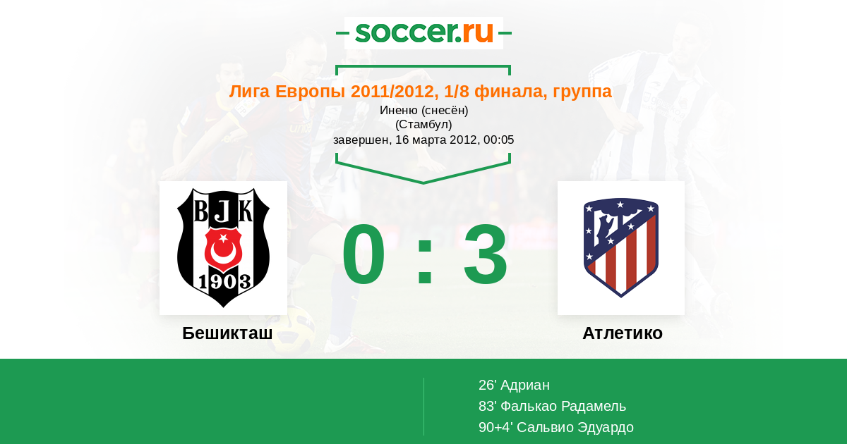Протокол матча Бешикташ против Атлетико