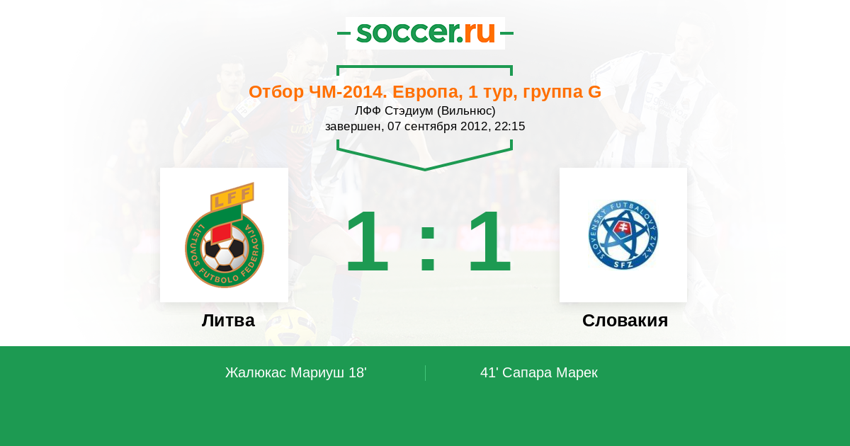 Протокол матча Литва против Словакия