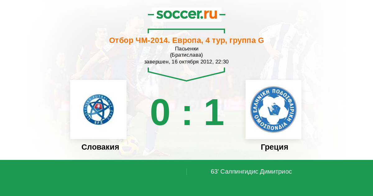 Протокол матча Словакия против Греция