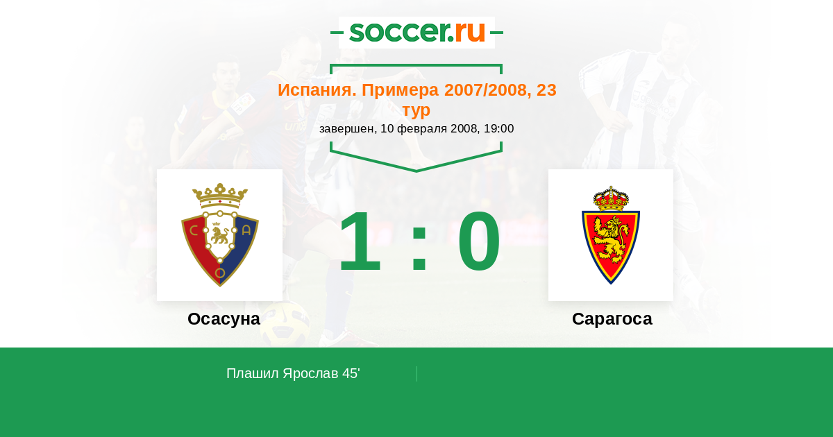 Протокол матча Осасуна против Сарагоса