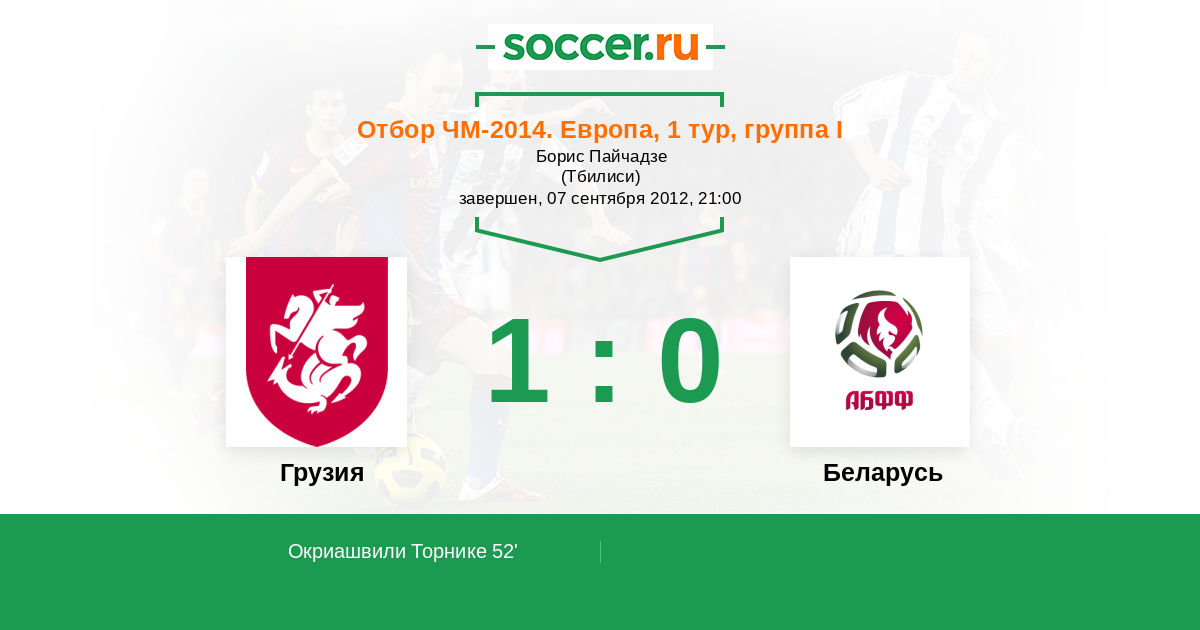 52' (1:0) Окриашвили Торнике (2) (Мчедлидзе Леван (11))