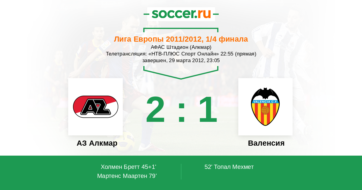 Протокол матча АЗ Алкмар против Валенсия