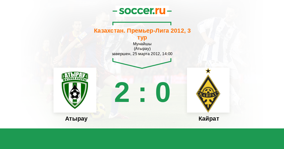 Казахстан. Премьер-лига 01.07.2012 Кайрат Логотип футбольный клуб Кайрат (Алматы) 1:1 Логотип футбольный клуб Атырау Атырау