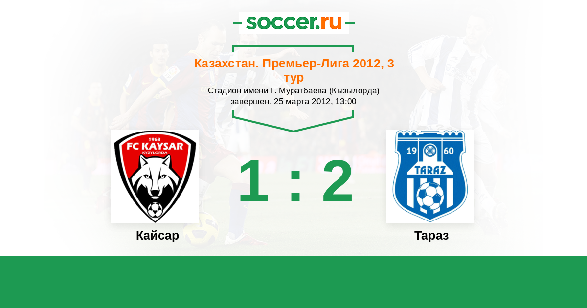 Казахстан. Премьер-лига 01.07.2012 Тараз Логотип футбольный клуб Тараз 1:0 Логотип футбольный клуб Кайсар (Кызылорда) Кайсар