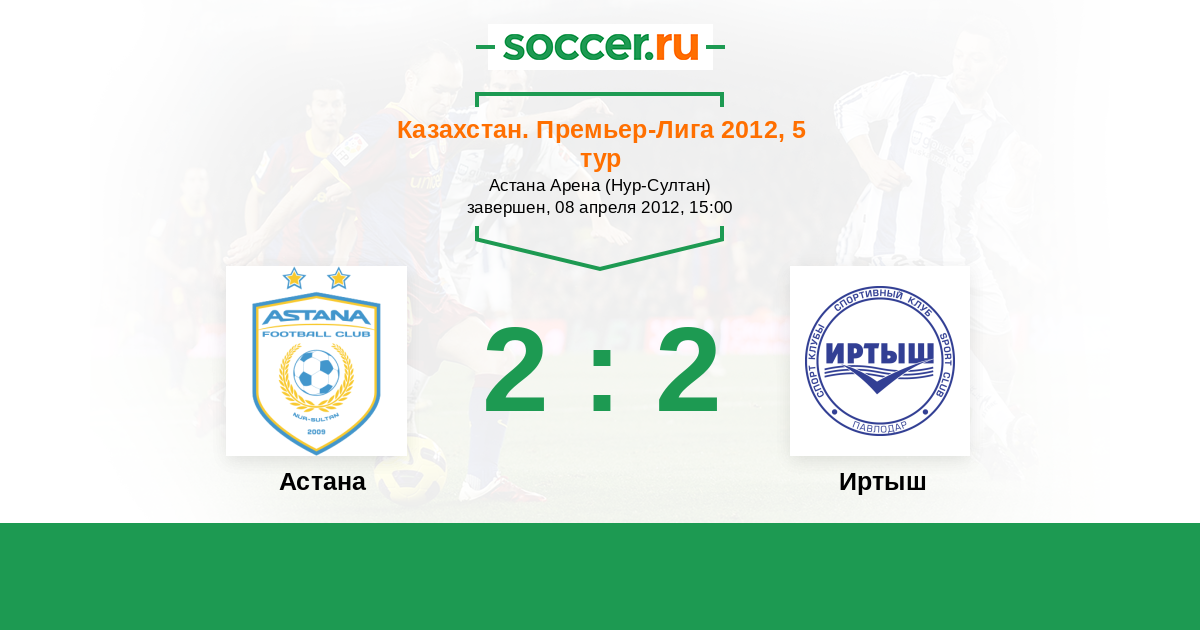 Казахстан. Премьер-лига 15.07.2012 Иртыш Логотип футбольный клуб Иртыш (Павлодар) 3:0 Логотип футбольный клуб Астана Астана