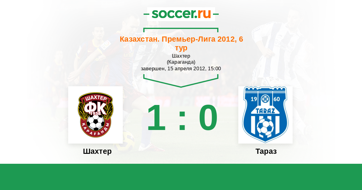 Казахстан. Премьер-лига 16.04.2011 Шахтер Логотип футбольный клуб Шахтер (Караганда) 3:0 Логотип футбольный клуб Тараз Тараз