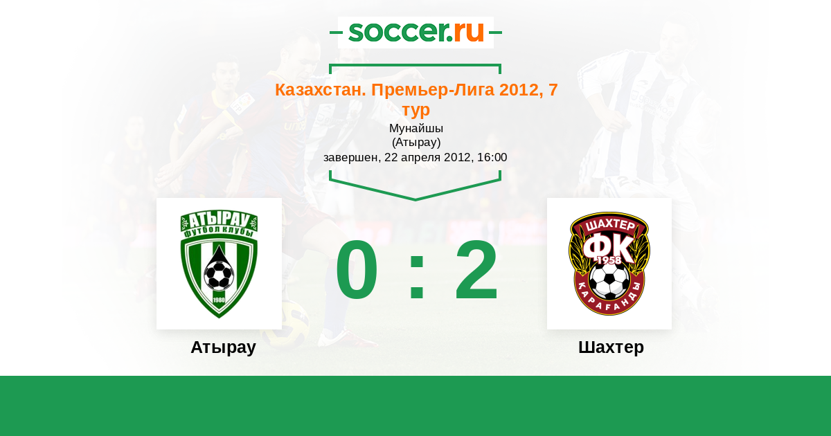 Казахстан. Премьер-лига 20.04.2013 Атырау Логотип футбольный клуб Атырау 1:0 Логотип футбольный клуб Шахтер (Караганда) Шахтер