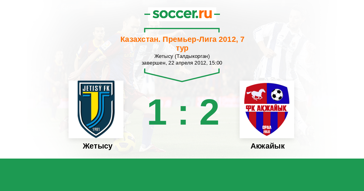 Казахстан. Премьер-лига 05.08.2012 Акжайык Логотип футбольный клуб Акжайык (Уральск) 2:2 Логотип футбольный клуб Жетысу (Талдыкорган) Жетысу
