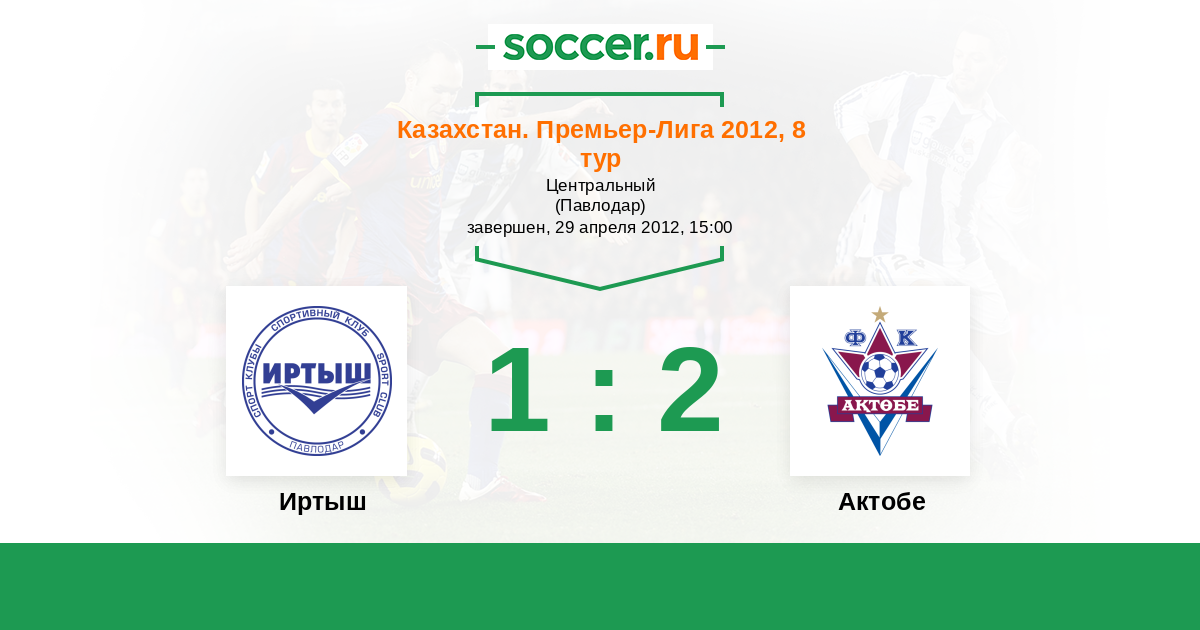 Казахстан. Премьер-лига 19.08.2012 Актобе Логотип футбольный клуб Актобе 1:0 Логотип футбольный клуб Иртыш (Павлодар) Иртыш