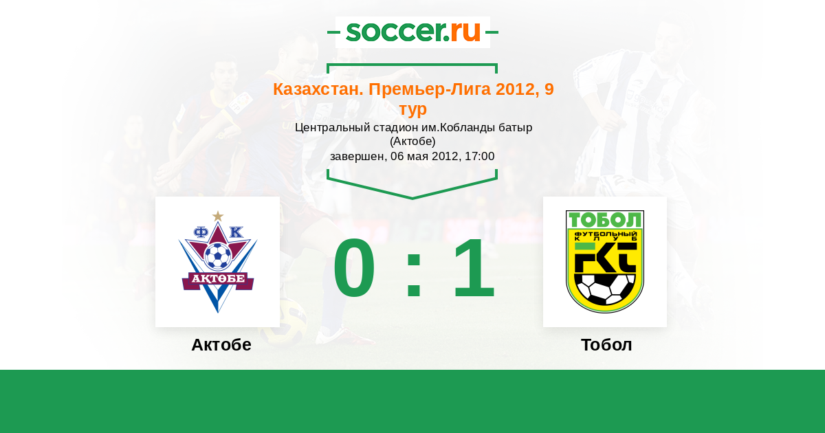 Казахстан. Премьер-лига 08.06.2010 Тобол Логотип футбольный клуб Тобол (Костанай) 2:1 Логотип футбольный клуб Актобе Актобе