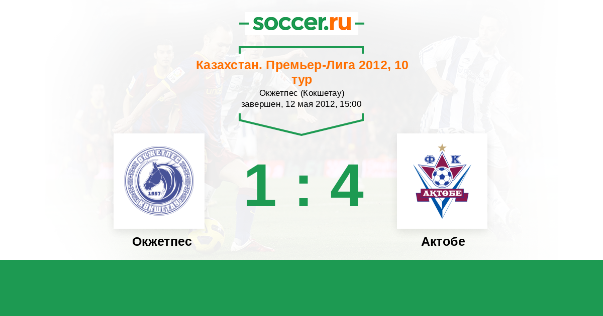 Казахстан. Премьер-лига 07.05.2010 Окжетпес Логотип футбольный клуб Окжетпес (Кокшетау) 0:1 Логотип футбольный клуб Актобе Актобе