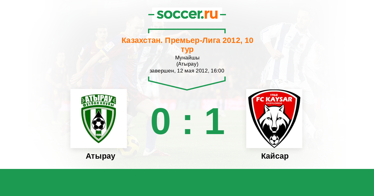 Казахстан. Премьер-лига 15.09.2012 Кайсар Логотип футбольный клуб Кайсар (Кызылорда) 1:0 Логотип футбольный клуб Атырау Атырау