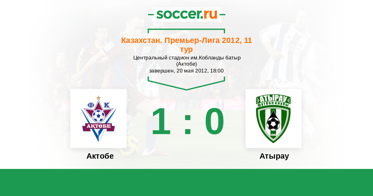 Казахстан. Премьер-лига 23.09.2012 Атырау Логотип футбольный клуб Атырау 0:2 Логотип футбольный клуб Актобе Актобе