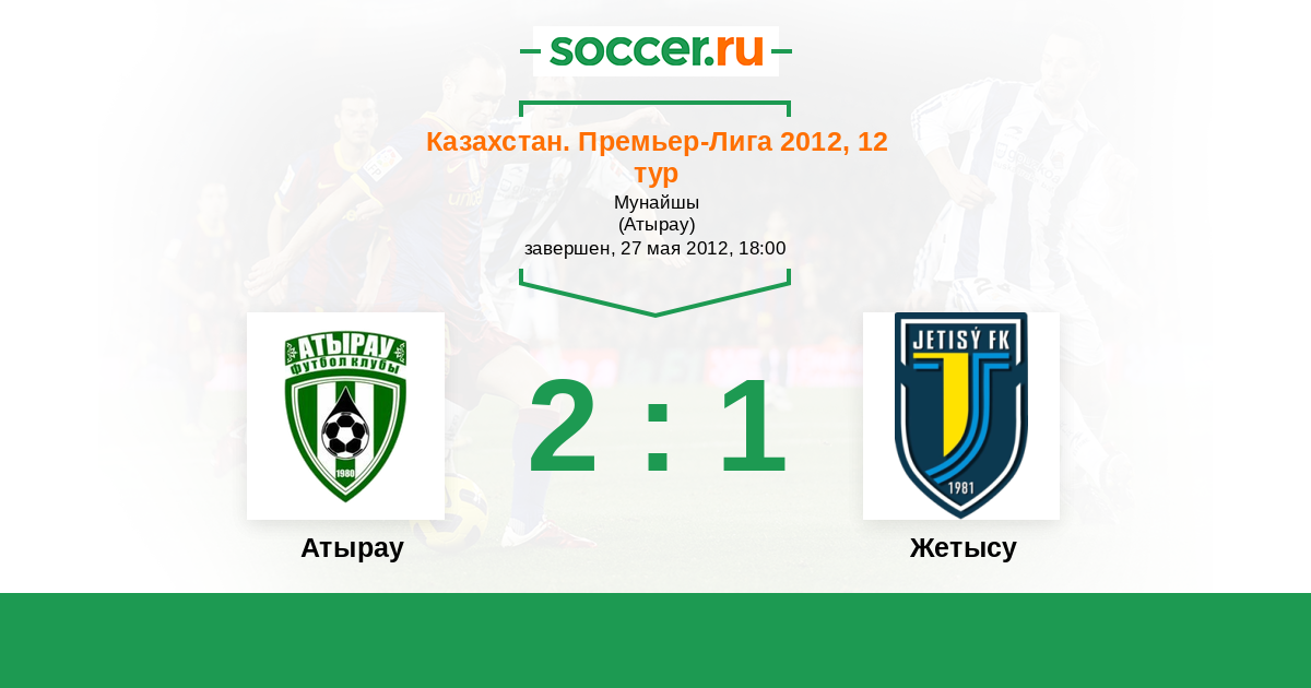 Казахстан. Премьер-лига 12.05.2010 Атырау Логотип футбольный клуб Атырау 1:2 Логотип футбольный клуб Жетысу (Талдыкорган) Жетысу