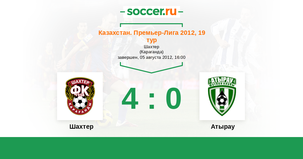 Казахстан. Премьер-лига 01.08.2010 Шахтер Логотип футбольный клуб Шахтер (Караганда) 1:1 Логотип футбольный клуб Атырау Атырау