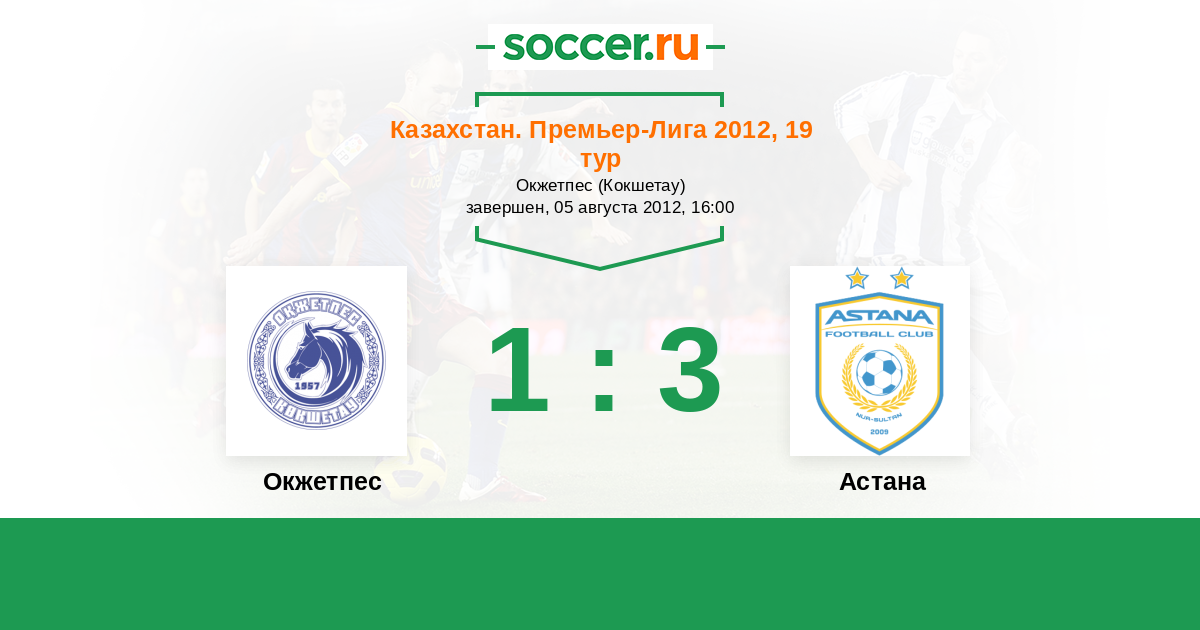 Казахстан. Премьер-лига 13.07.2009 Окжетпес Логотип футбольный клуб Окжетпес (Кокшетау) 1:5 Логотип футбольный клуб Астана Астана