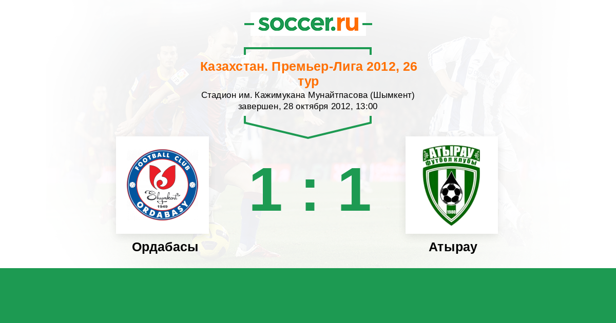 Казахстан. Премьер-лига 26.05.2011 Атырау Логотип футбольный клуб Атырау 1:1 Логотип футбольный клуб Ордабасы (Шымкент) Ордабасы