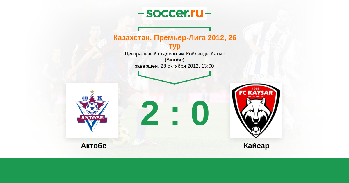 Казахстан. Премьер-лига 15.05.2011 Кайсар Логотип футбольный клуб Кайсар (Кызылорда) 0:2 Логотип футбольный клуб Актобе Актобе