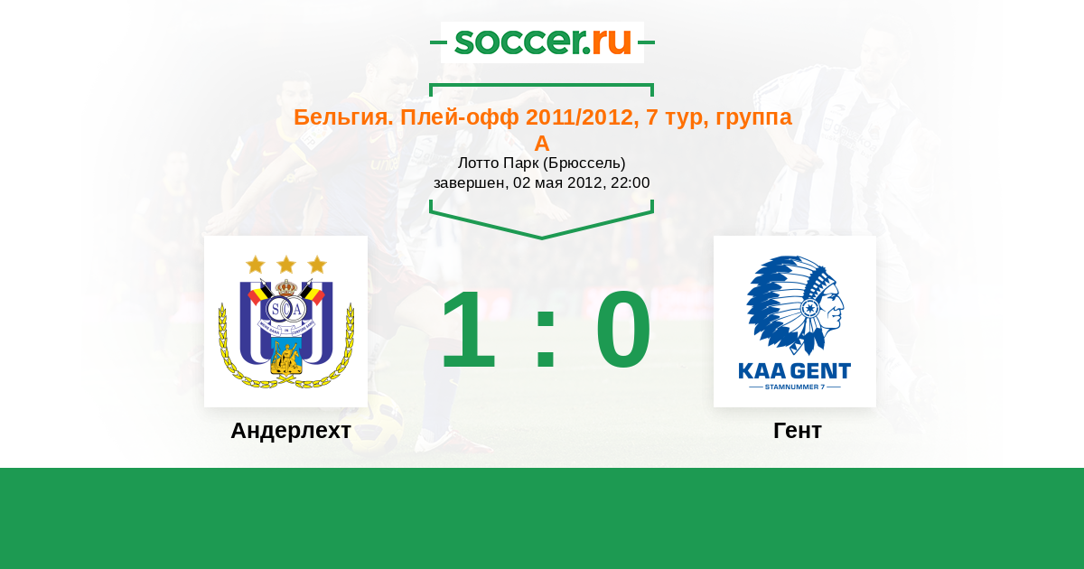Бельгия. Про-Лига 11.04.2012 Гент Логотип футбольный клуб Гент 1:4 Логотип футбольный клуб Андерлехт (Брюссель) Андерлехт