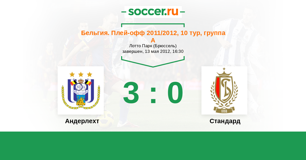 Бельгия. Про-Лига 06.04.2012 Стандард Логотип футбольный клуб Стандард (Льеж) 0:0 Логотип футбольный клуб Андерлехт (Брюссель) Андерлехт