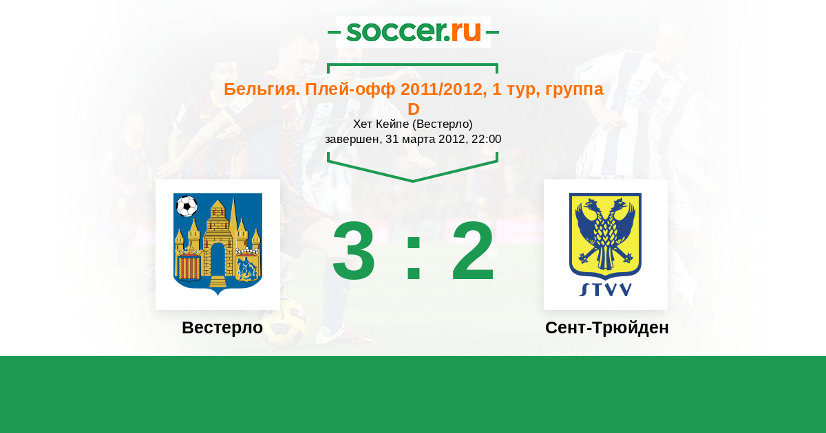 Бельгия. Про-Лига 07.04.2012 Сент-Трюйден Логотип футбольный клуб Сент-Трюйден (Синт-Трёйден) 3:1 Логотип футбольный клуб Вестерло Вестерло