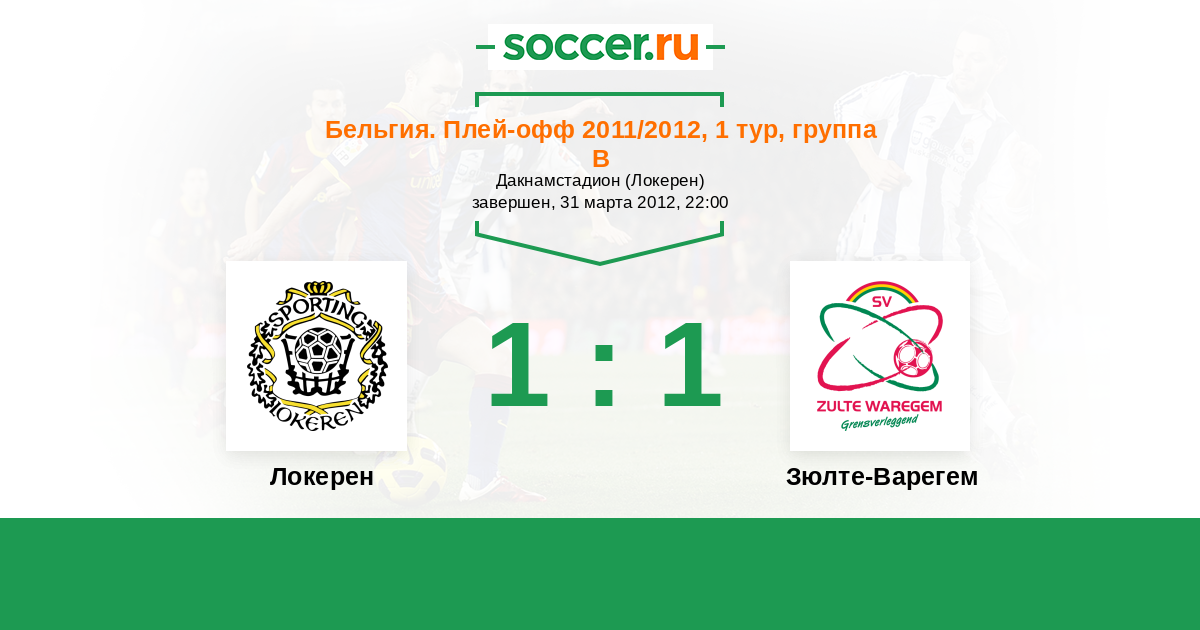 Бельгия. Про-Лига 03.12.2011 Зюлте-Варегем Логотип футбольный клуб Зюлте-Варегем 1:1 Логотип футбольный клуб Локерен Локерен