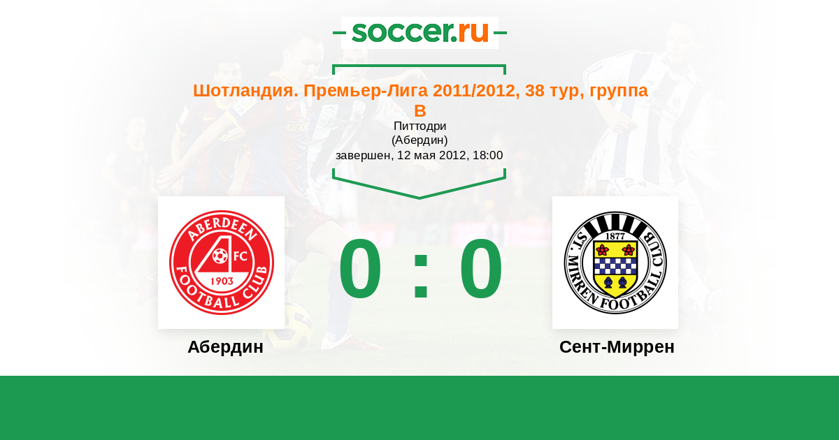 Шотландия. Премьер-Лига 25.02.2012 Сент-Миррен Логотип футбольный клуб Сент-Миррен (Пейсли) 1:1 Логотип футбольный клуб Абердин Абердин