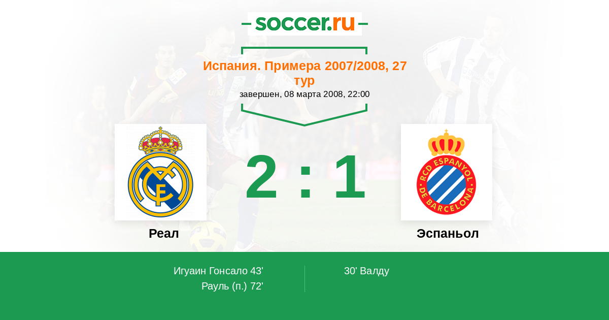 Рауль 2:1(П) 72’
