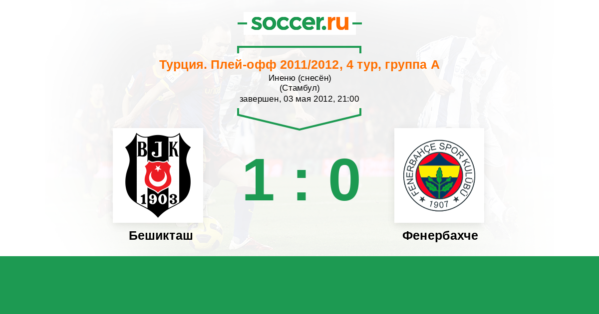 Турция. Суперлига 29.04.2012 Фенербахче Логотип футбольный клуб Фенербахче (Стамбул) 2:1 Логотип футбольный клуб Бешикташ (Стамбул) Бешикташ