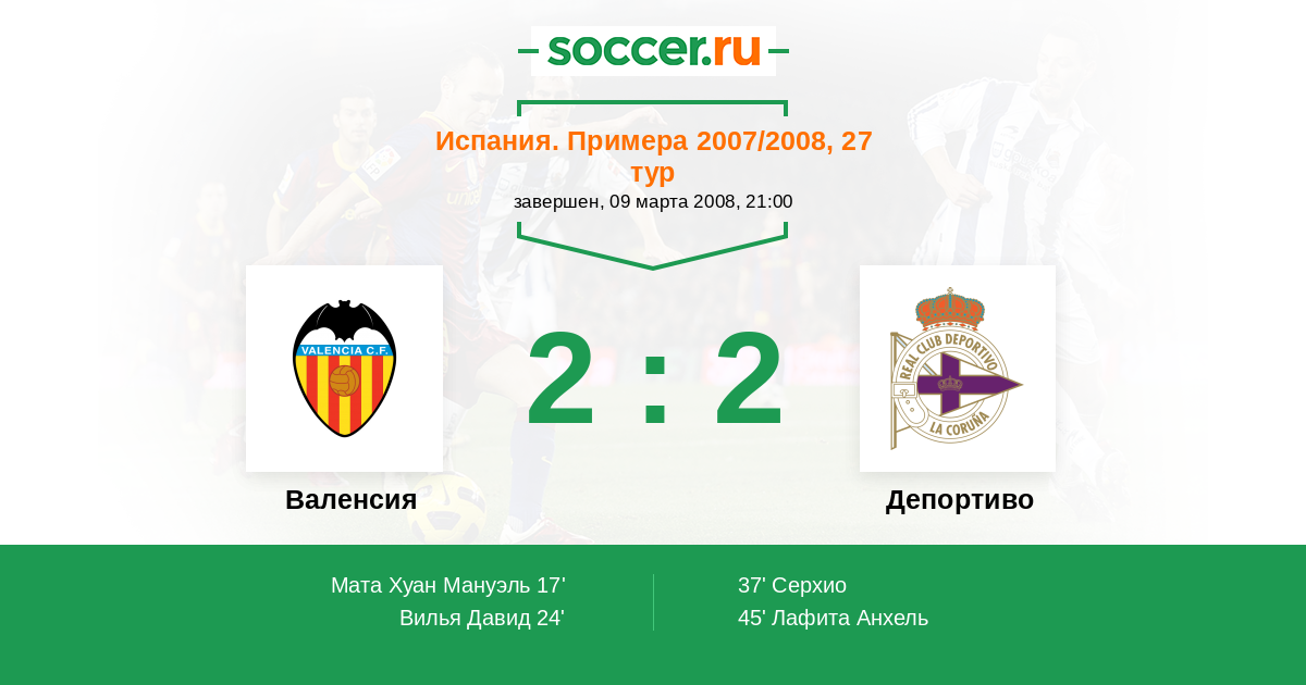 Протокол матча Валенсия против Депортиво