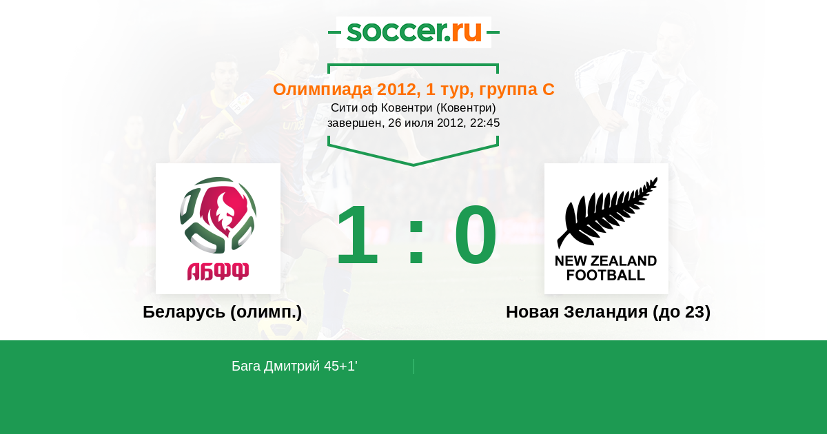 Протокол матча Беларусь (олимп.) против Новая Зеландия (до 23)