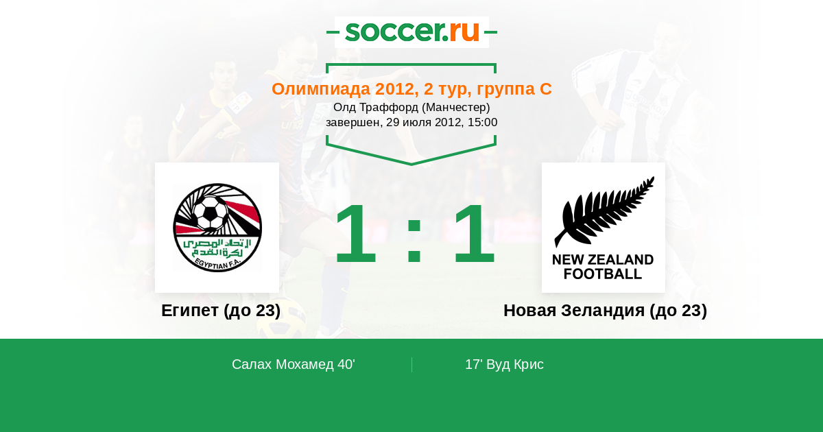 Протокол матча Египет (до 23) против Новая Зеландия (до 23)