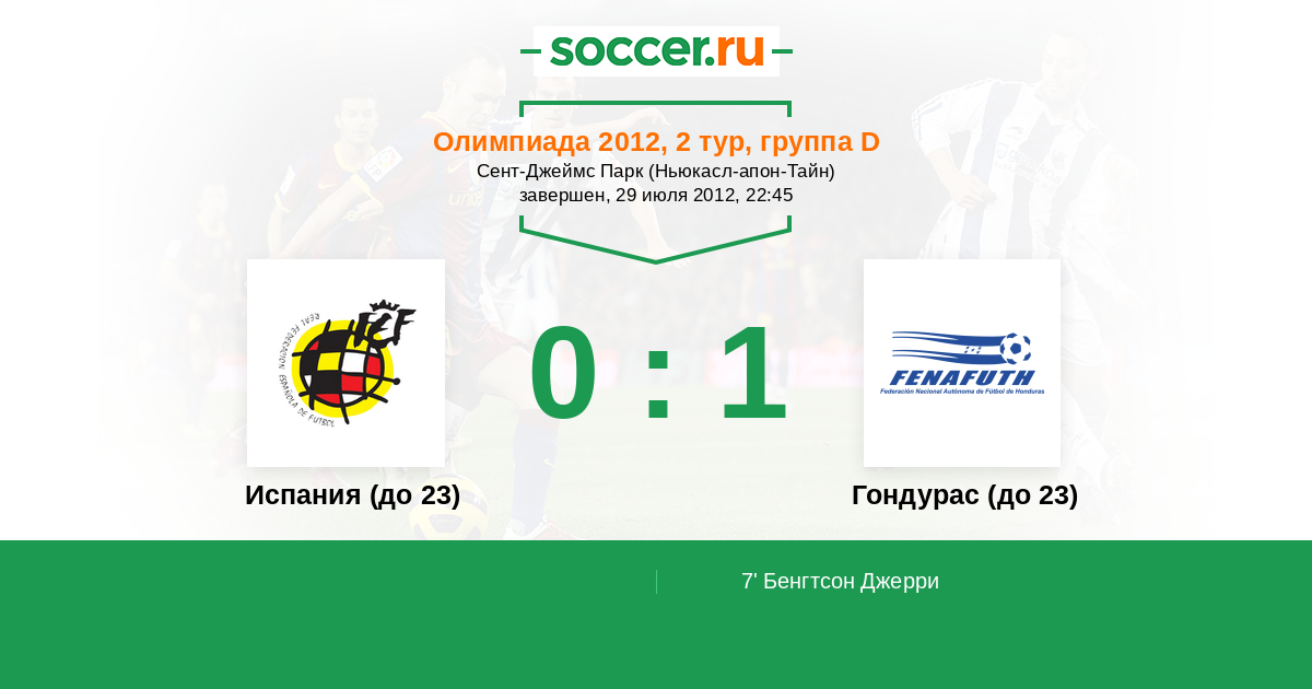 Протокол матча Испания (до 23) против Гондурас (до 23)