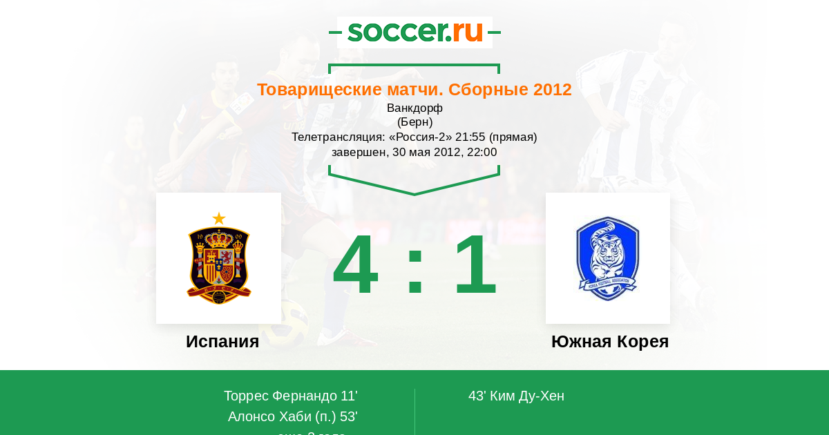 Протокол матча Испания против Южная Корея