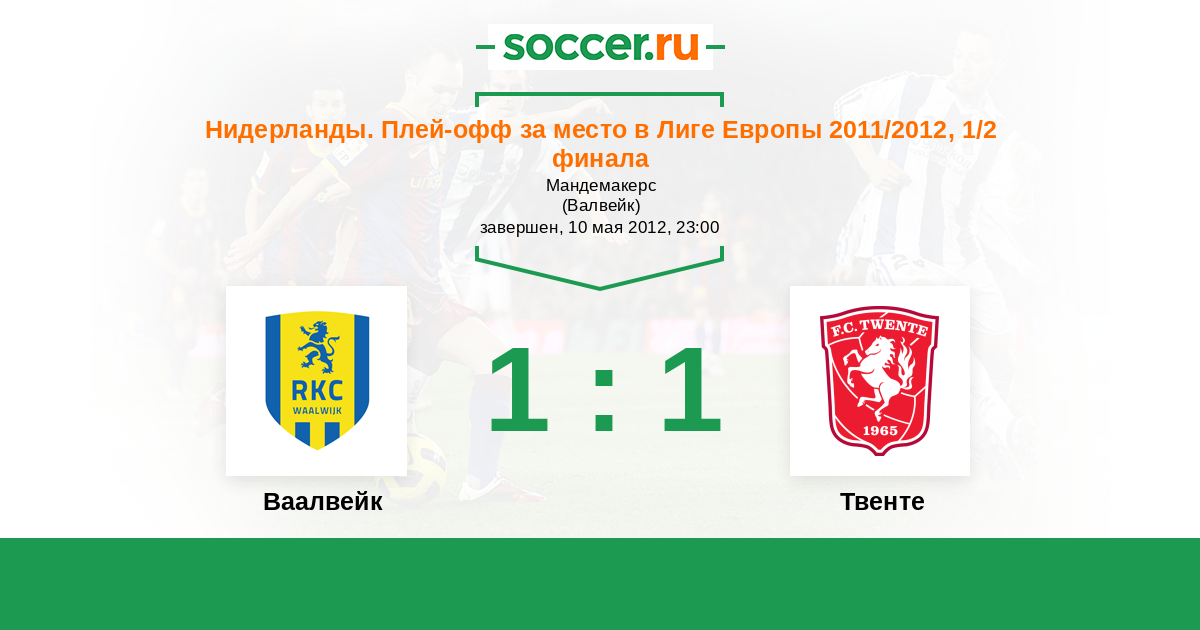 Нидерланды. Эредивизи 13.05.2012 Твенте Логотип футбольный клуб Твенте (Энсхеде) 0:1 Логотип футбольный клуб Ваалвейк (Валвейк) Ваалвейк