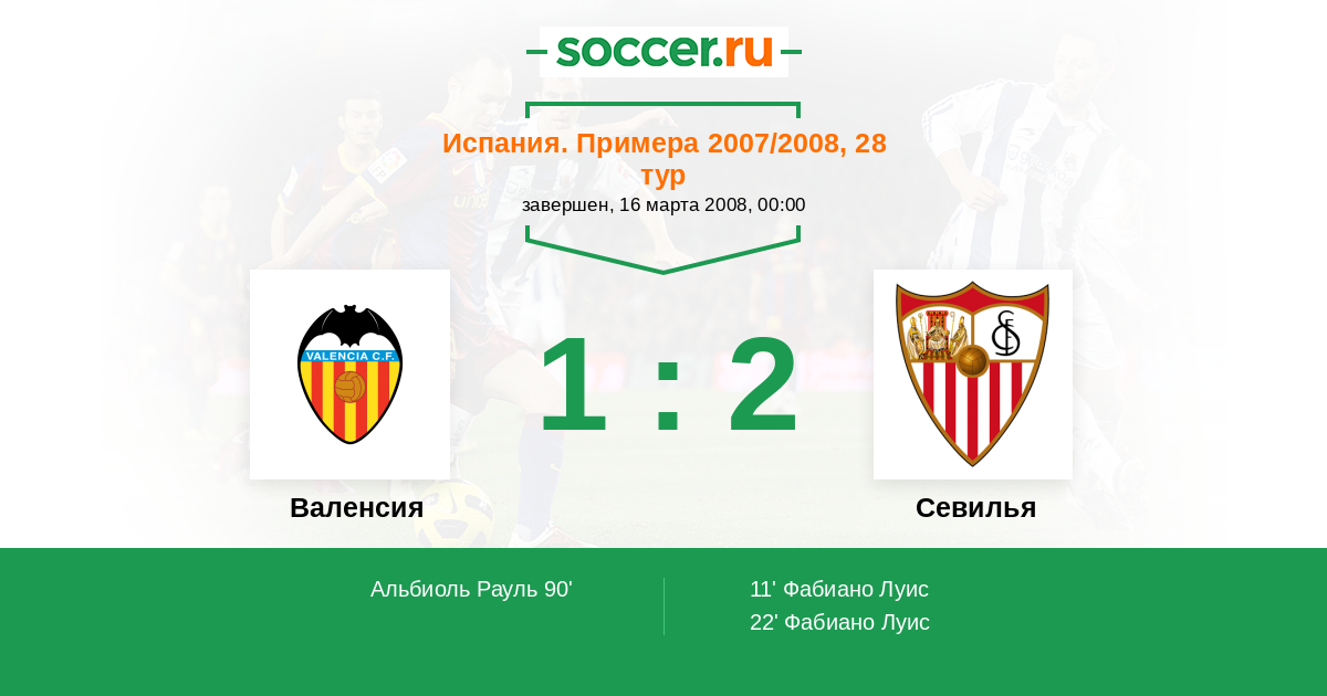 Протокол матча Валенсия против Севилья