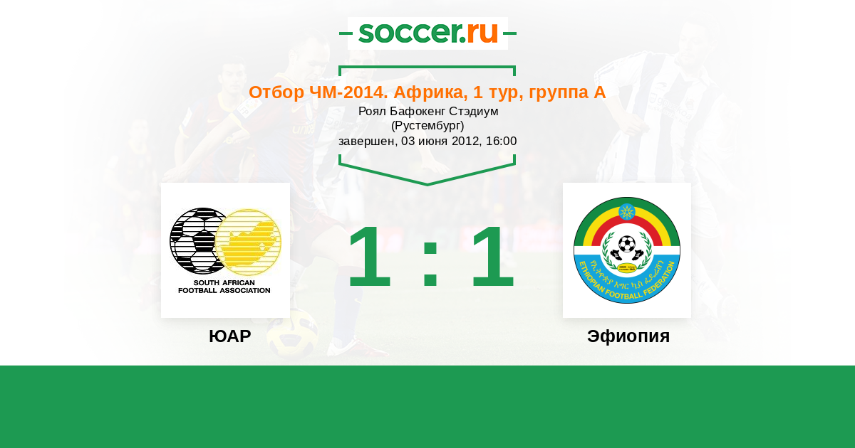 История матча ЮАР против Эфиопия