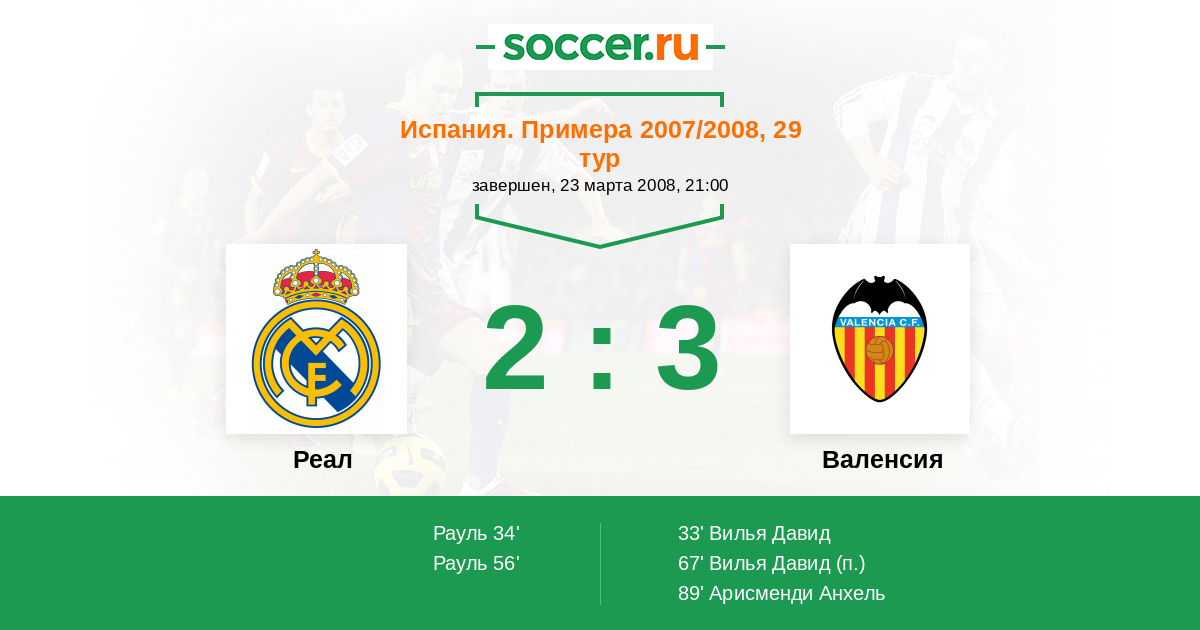 Протокол матча Реал против Валенсия