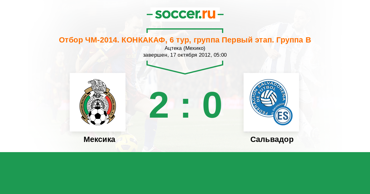 Отбор ЧМ. КОНКАКАФ 13.06.2012 Сальвадор Логотип Сальвадор 1:2 Логотип Мексика Мексика