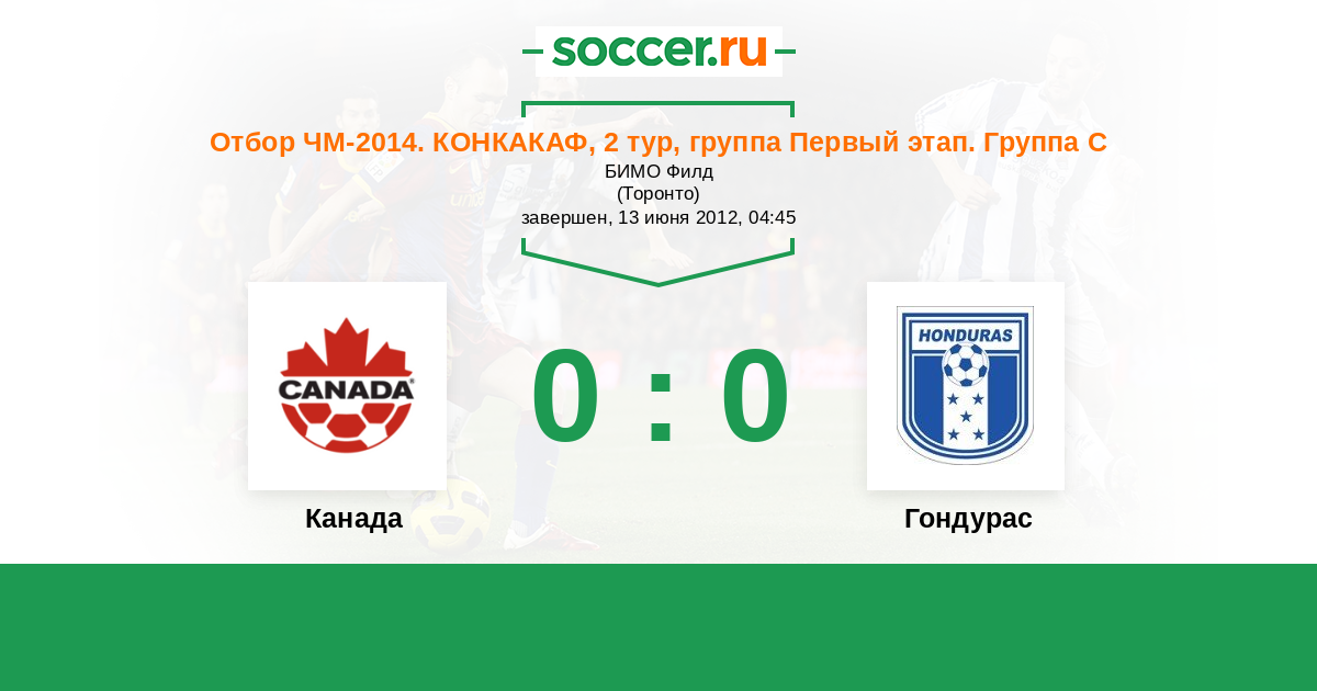 Отбор ЧМ. КОНКАКАФ 16.10.2012 Гондурас Логотип Гондурас 8:1 Логотип Канада Канада