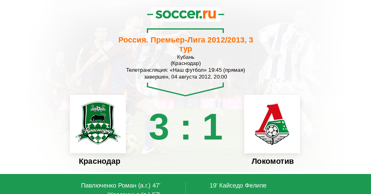 Протокол матча Краснодар против Локомотив