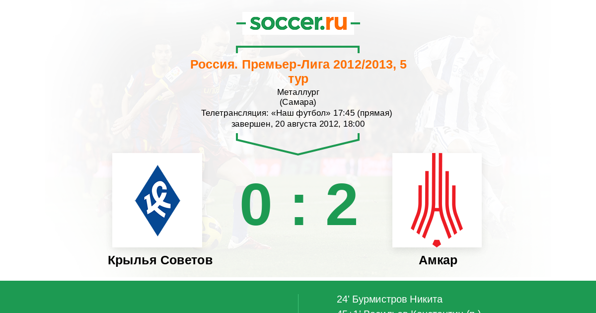 Протокол матча Крылья Советов против Амкар