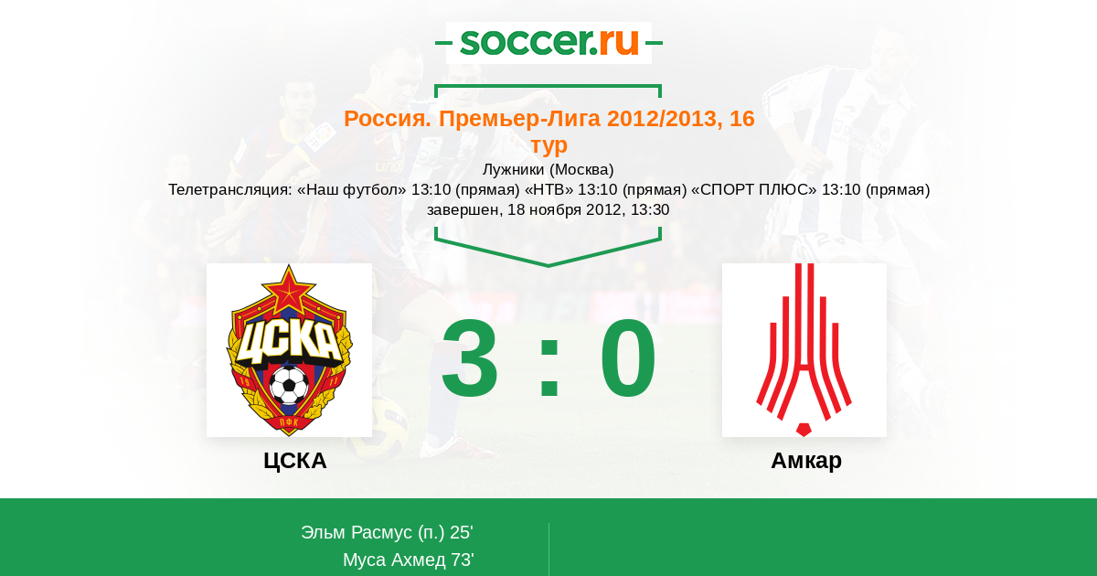 Протокол матча ЦСКА против Амкар