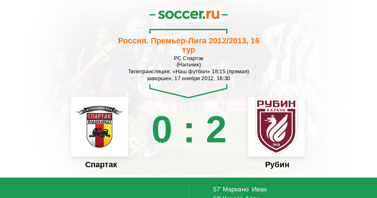 57' (0:1) Маркано Иван (25) (Касаев Алан (10))