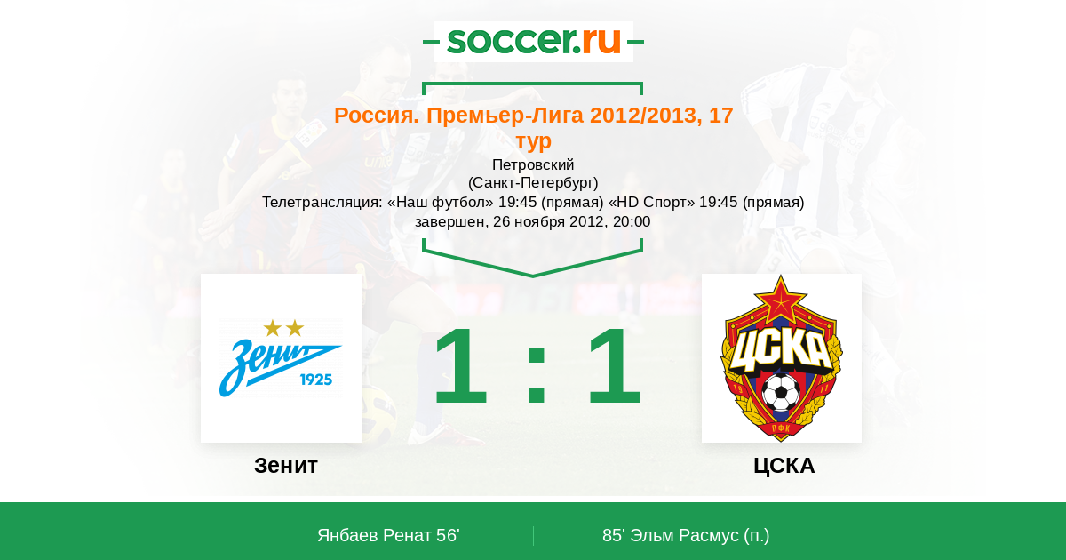 Протокол матча Зенит против ЦСКА